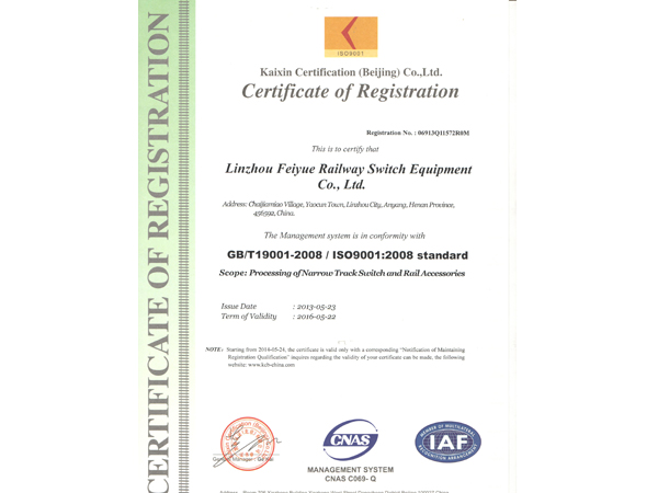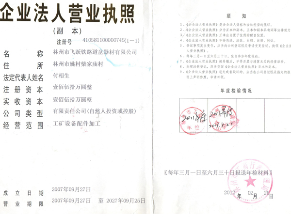 林州市飛躍鐵路道岔器材有限公司位于舉世聞名的世界八大奇跡之一“人工天河”紅旗渠畔,晉、冀、豫三省交界處,交通、通訊便捷。 公司擁有職工和管理人員120多人,高工5名,技術(shù)人員23人。擁有先進(jìn)的鑄造機(jī)加工設(shè)備和完整的質(zhì)量檢測(cè)體系,使我公司連續(xù)數(shù)年被評(píng)為“重合同守信用”和“重量管理”先進(jìn)單位。公司生產(chǎn)的主要產(chǎn)品有:輕重軌道岔及各種工具。按種類區(qū)分有:?jiǎn)伍_道岔、對(duì)稱道岔、三開道岔、渡交組合道岔等。特殊要